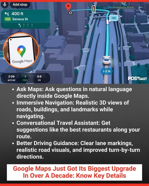 Smarter Voice Directions: The AI provides conversational directions, such as: “Keep this exit and take the following exit to Illinois 43 South,” sounding more like a passenger. Google Maps’ Biggest Update In A Decade: Gemini AI Brings ‘Ask Maps’ And Real-Time 3D Navigation In a move that could dramatically change the way people find their way around the globe, Google Maps is about to undergo its largest upgrade in more than ten years.