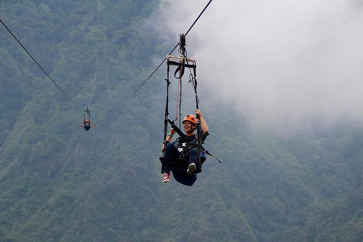 an hour. The ZipFlyer is located only 30 minutes ride from Pokhara Lakeside. Transportation is included. QUICK FACTS – Zipflyer Nepal is an outdoor adventure activity and operates in all weather conditions – 24 hour cancellation policy – Minimum age is 10 years – Minimum weight is 75 lbs (34 kg). Upper weight limit is 275 lbs (125 kg) – Closed toed footwear is required – Guest must be a minimum of 15 years old to zip without a guardian – All minors (18 years and under) require a guardian signature on their waiver – Dual zipline – offering side by side zipping – Over 1500 ft above the ground at certain points during the zip – Max speeds: well over 100 km/h