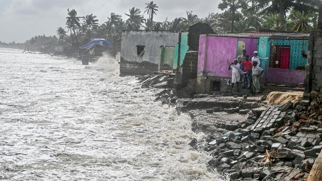 Agricultural crops across 87,000 hectares inundated; the severe cyclonic storm also damaged roads and bridges, and uprooted trees, officials said; CM takes stock of damage, says loss of life and property minimised due to measures taken by the State government A view of eroded houses in Jaggaraju Colony, Kakinada, Andhra Pradesh, in the aftermath of Cyclone Montha on October 29, 2025. | Photo Credit: K.R. Deepak